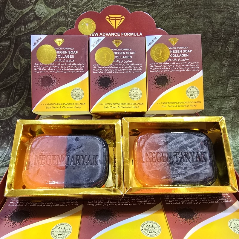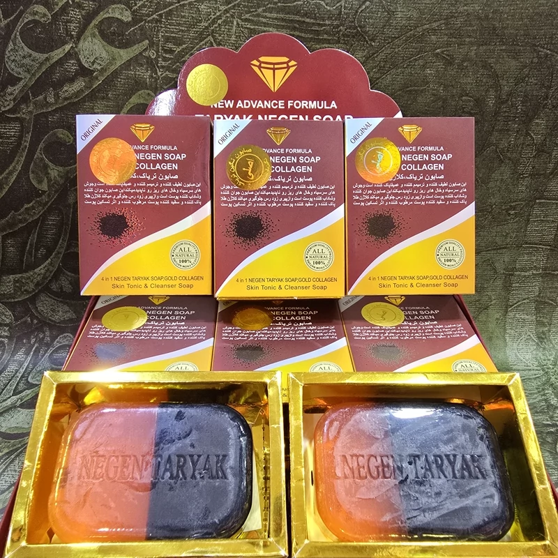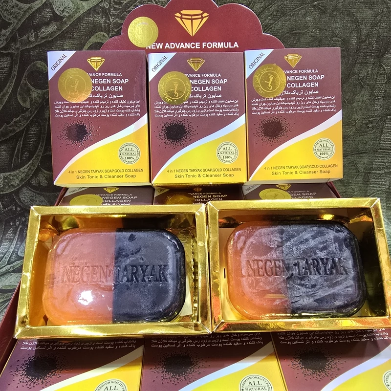 صابون نگین دورنگ کلاژن طلا اصل ازبین برنده لایه های مرده پوست روشن کننده پوست کاملا طبیعی و ارگانیک حاوی عصاره روغن آرگان .روغن بیلوئیا.و گیاه باکویا معطر حاوی کلاژن طلا پاکسازی عمیق پوست روشن کننده پوست مناسب انواع پوست بخصوص پوست چرب مرطوب کننده و اب رسان جلوگیری از پیری زودرس پوست نرم کننده پوست از بین برنده لک ها و کم رنگ کردن انها مناسب انواع سنین